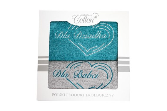 Dla Babci i Dziadka Komplet ręczników w pudełku 2 szt 50x100 szary turkusowy