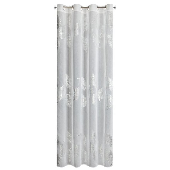 Firana 140x250 Idalia biała srebrma liście gotowa na przelotkach Eurofirany