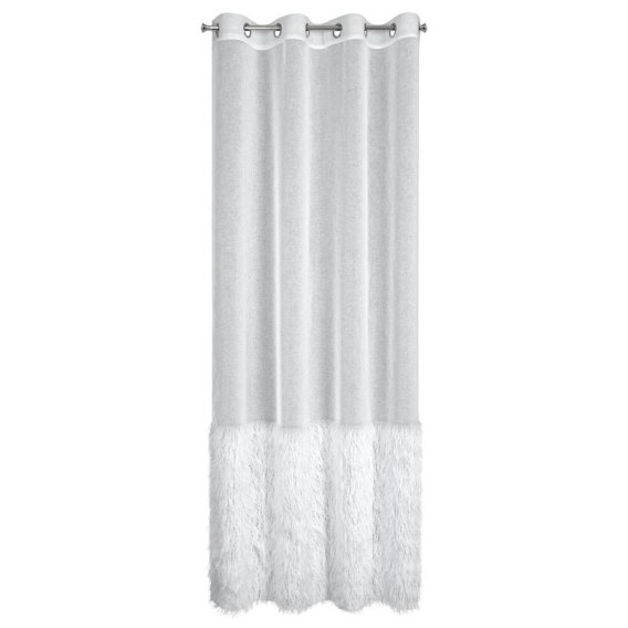 Firana gotowa 140x250 Margaret 6 biała zdobiona moherową nicią gotowa na przelotkach Eurofirany