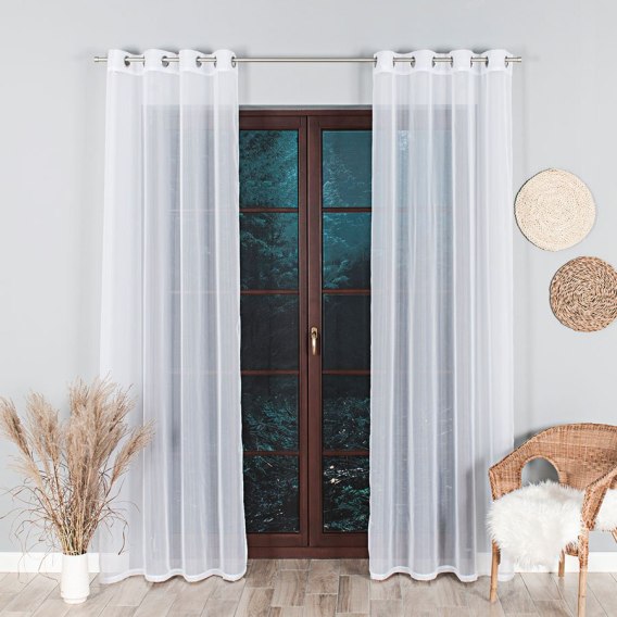 Firana gotowa na srebrnych przelotkach 140x250 001 biała Woal