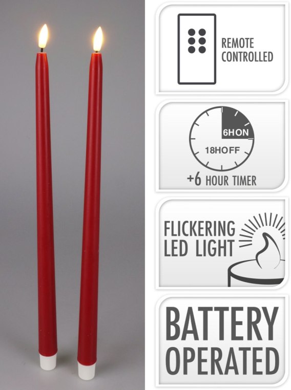 KOMPLET 2 ŚWIEC LED 38CM CZERWONY