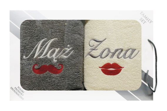 Komplet ręczników w pudełku 2 szt 70x140 Mąż Żona Usta Wąsy szary jasny 06 kremowy