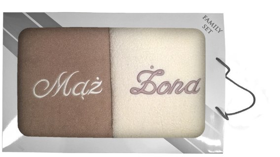 Komplet ręczników w pudełku 2 szt 70x140 Mąż i Żona Beżowy Kremowy