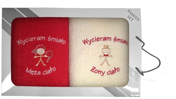 Komplet ręczników w pudełku 2 szt 70x140 Wycieram Śmiało Ciało czerwony 23 kremowy