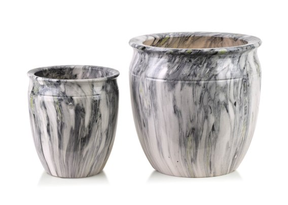 NEVA MARBLE Komplet 2 osłonek ceramicznych 30,5x30,5x30,5/20,5x20,5x23cmKomplet 2 unikatowych osłonek z rantem. W odcieniach szarości.Komplet dwóch unikatowych osłonek z kolekcji NEVA MARBLE to elegancki zestaw ceramiczny wyróżniający się subtelnym, marmurowym wzorem w odcieniach szarości oraz ozdobnym rantem, który dodaje im wyjątkowego charakteru. Ich powierzchnia nawiązuje do naturalnego kamienia, tworząc efektowną i ponadczasową dekorację, idealnie wpisującą się w nowoczesne, klasyczne oraz minimalistyczne aranżacje wnętrz.Osłonki wykonane są z wysokiej jakości ceramiki, dzięki czemu charakteryzują się trwałością, stabilnością i eleganckim wykończeniem. Delikatny połysk i subtelne przejścia barw nadają im lekkości i szlachetności, a ozdobny rant podkreśla ich dekoracyjny charakter. Zestaw obejmuje dwie osłonki o wymiarach 30,5x30,5x30,5 cm oraz 20,5x20,5x23 cm, które doskonale prezentują się razem, tworząc harmonijną kompozycję, lub osobno . jako stylowy akcent w różnych częściach wnętrza.Komplet NEVA MARBLE to połączenie naturalnego uroku i elegancji. Idealnie sprawdzi się jako oprawa dla roślin zielonych, kwitnących lub dekoracyjnych traw, podkreślając ich piękno i dodając przestrzeni wyjątkowego, luksusowego charakteru.