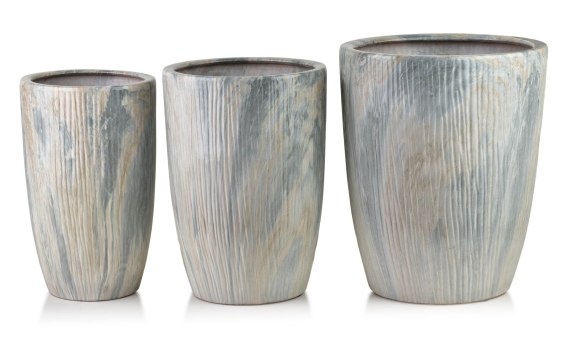 Komplet trzech osłonek ceramicznych NEVA MARBLE to elegancka propozycja utrzymana w delikatnej kolorystyce szarości, inspirowanej naturalnym marmurem. Osłonki wyróżniają się subtelnym wzorem na powierzchni, który imituje strukturę kamienia, tworząc efekt luksusu i ponadczasowej elegancji. Wykonane z wysokiej jakości ceramiki, są trwałe, stabilne i odporne na uszkodzenia, a jednocześnie prezentują się niezwykle stylowo.Zestaw składa się z trzech osłonek o wymiarach 37x37x47 cm, 30x30x43 cm oraz 24x24x40 cm, które doskonale komponują się ze sobą, tworząc harmonijną, wielopoziomową dekorację. Dzięki różnym rozmiarom można je ustawić razem, uzyskując efektowną aranżację roślinną, lub rozdzielić, by zdobiły różne części pomieszczenia. Ich klasyczny kształt i neutralna kolorystyka sprawiają, że świetnie wpisują się w każde wnętrze . od nowoczesnego po klasyczne czy loftowe.Komplet NEVA MARBLE to połączenie funkcjonalności i elegancji. Stanowi idealną oprawę dla roślin doniczkowych, podkreślając ich naturalne piękno i dodając przestrzeni harmonii. Szare, marmurowe wykończenie wprowadza do wnętrza spokój, styl i wyrafinowany charakter, czyniąc z tych osłonek nie tylko praktyczny element, ale także wyjątkową dekorację.