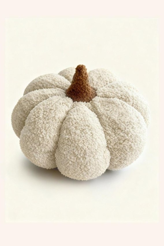 Poduszka dekoracyjna dynia boucle beżowa 35x35 - jesienna ozdoba do salonu i dekoracja na Halloween