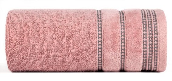 Ręcznik 70x140 Amanda pudrowy różowy z ozdobną welurową bordiurą w pasy frotte 500 g/m2 Eurofirany