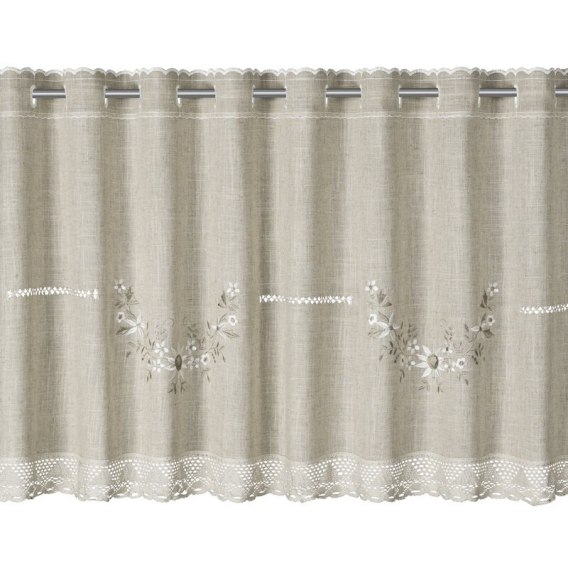 Zazdrostka 60x150 Veronica naturalna z tkaniny z dodatkiem lnu zdobiona haftem gotowa na tunelu Eurofirany